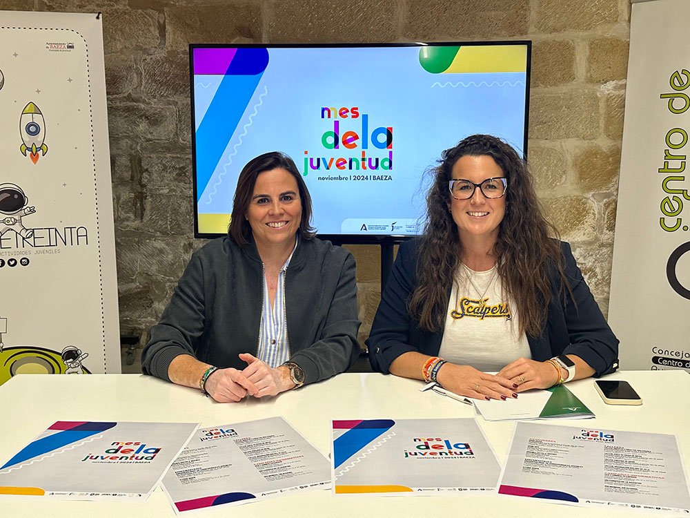 Mari Ángeles Moreno, concejala de Juventud, acompañada de Ana González, coordinadora del Instituto Andaluz de la Juventud en Jaén, han presentado el programa de actividades de la 19ª edición del Mes de la Juventud, con el que el Ayuntamiento de Baeza reafirma su compromiso con el desarrollo de los jóvenes.
