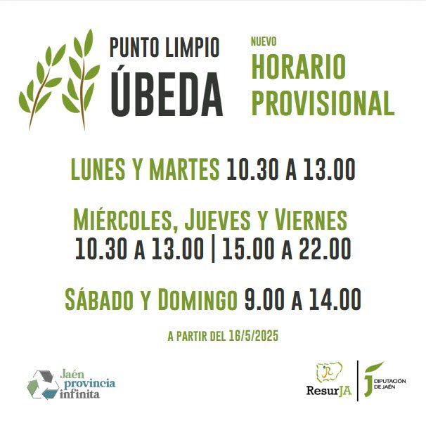 Desde el Ayuntamiento se hace un llamamiento a la colaboración y responsabilidad de toda la ciudadanía para mantener limpia nuestra ciudad. Hacer uso del Punto Limpio y respetar los horarios establecidos, ha insistido García,“es clave para evitar vertidos incontrolados que no solo deterioran la imagen de Úbeda, sino que generan molestias al vecindario y suponen un coste añadido para las arcas públicas. Cuidar nuestro entorno es tarea de todos y todas”.