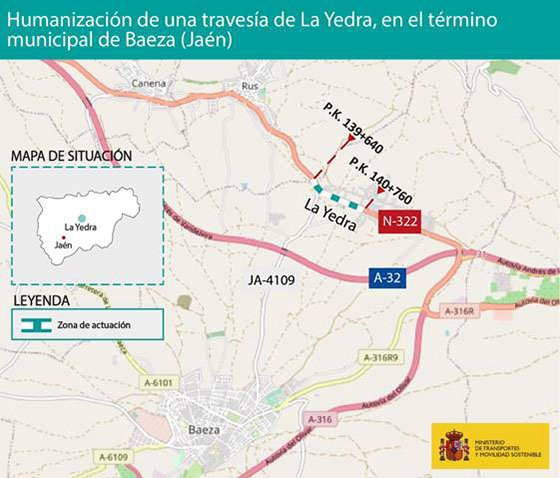 La actuación tiene un presupuesto de 2,15 millones, el objetivo es integrar 1,1 km de la N-322 en el entorno urbano de la pedanía del municipio de Baeza