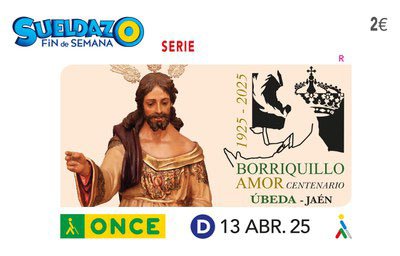 La ONCE va a dedicar el sorteo diario del próximo domingo, 13 de abril, al Centenario de la Real Cofradía de la Entrada de Jesús en Jerusalén y María Santísima del Amor de Úbeda, en su 100º aniversario.